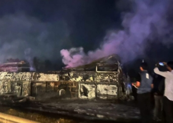 د هند په سوېل کې د چیتردورګا ولسوالۍ په ګورلاتو سیمه کې په یوه مسافر وړونکي بس د اورلګېدنې له...