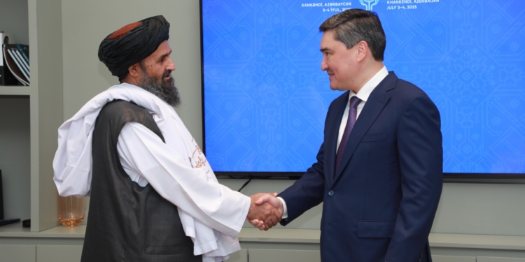 د سرپرست حکومت اقتصادي مرستیال، ملا عبدالغني برادر په اذربایجان کې د قزاقستان له لومړي وزیر سره کتلي دي. اقتصادي معاونیت په یوه خبرپاڼه کې ویلي، دواړو لورو د سیاسي، اقتصادي او سوداګریزو اړیکو پر پراخولو خبرې کړې دي. برادر قزاقستان یو باوري شریک بللی او په نړۍواله کچه د ملاتړ مننه یې کړې ده. نوموړي له قزاقستان غوښتي، چې له ټرانزیټ، پانګونې او سوداګرۍ فرصتونو ګټه واخلي. د قزاقستان لومړي وزیر د اړیکو د پراخېدو ژمنه کړې او د تورغونډۍ–هرات پروژه کې یې د ۵۰۰ میلیونه ډالرو پانګونه اعلان کړه او د کانونو، مېوو وارداتو او صادراتو د اسانتیاوو لیوالتیا یې ښودلې ده.