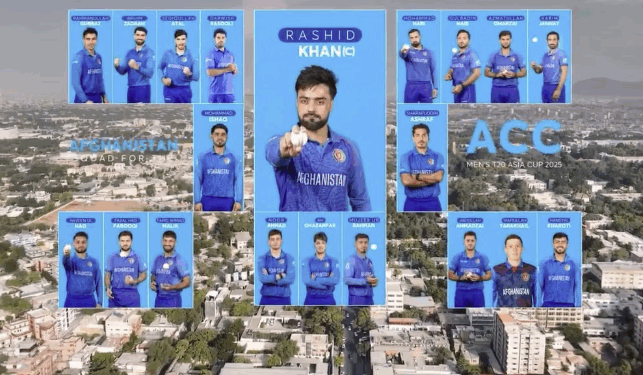 د افغانستان کرکټ بورډ ویلي، چې په متحده عربي اماراتو کې د ترسره کېدونکي اسیایي جام سیالیو لپاره یې ۱۷ لوبغاړي په عمومي او درې نور په احتیاطي نوملړ کې شامل کړي دي. کرکټ بورډ ویلي، چې راشد خان به د دې لوبډلې مشري کوي او د وفیعالله ترهخېل په نوم تازه دمی لوبغاړی هم لوبډلې کې ځای شو دی. دغه سیالۍ به د روان کال د سپټمبر ۹مه نېټه پیل او د همدې میاشتې په ۲۸مه نېټه به پای ته ورسېږي. افغانستان د پیل په لومړۍ ورخ له هانګ کانګ، په ۱۶مه نېټه له بنګلهدېش او ۱۸مه به له سرېلانکا سره ولوبېږي.