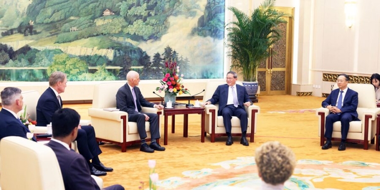 د چين صدراعظم لي چيانګ د سپتمبر د ۲۱مې نېټې په مازديګر په بېجينګ کې د امريکا د عوامو مجلس د غړو له پلاوي سره وکتل.