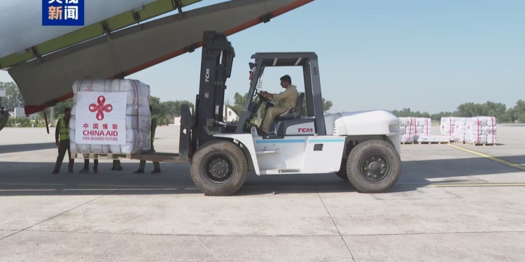 د چين دوه وای ـ ۲۰ بار وړونکې الوتکې چې له سيلاب ځپلو سيمو سره د چيني حکومت لومړۍ جوپه بېړني مرستندويه توکي پکې بار وو، د سپتمبر د ۲۸مې نېټې په سهار کابو ۱۰ بجو د پاکستان اسلام اباد ته نږدې د راولپنډۍ ښار په نور خان هوايي پوځي اډه کې کښته شوې دي.