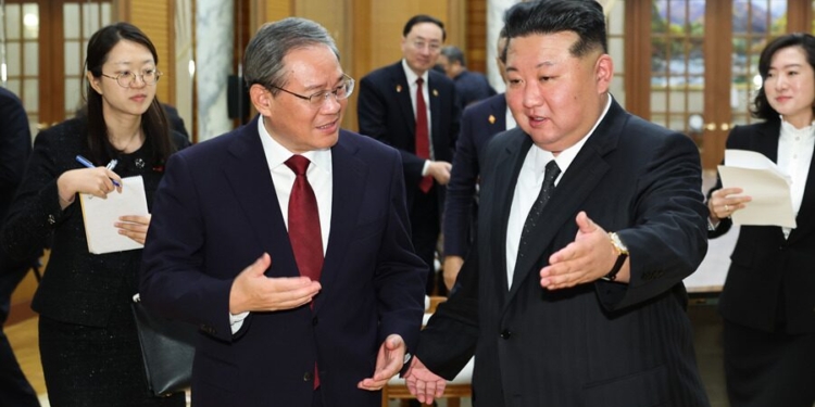 د چين د کمونېست ګوند د مرکزي کمېټې د سياسي بيورو دايمي غړي او صدراعظم لي چيانګ د اکتوبر په نهمه د کوریا ډيموکراټيک ولسي جمهوريت په پلازمېنه پيونګيانګ کې د دغه هېواد د کارګرو ګوند له عمومي منشي او د دولتي شورا له مشر کيم جونګ اون سره وکتل.