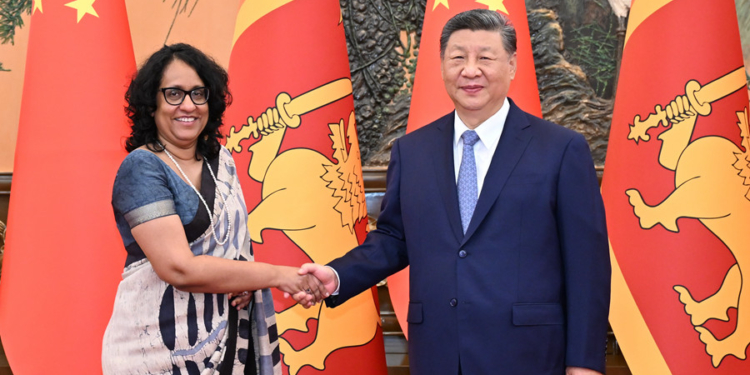 د چين دولت رئيس شي جين پينګ د اکتوبر په ۱۴مه نېټه په بېجينګ کې د خلکو په لوی تالار کې د سريلانکا له صدراعظمې هاريني امارسوريا سره وکتل.