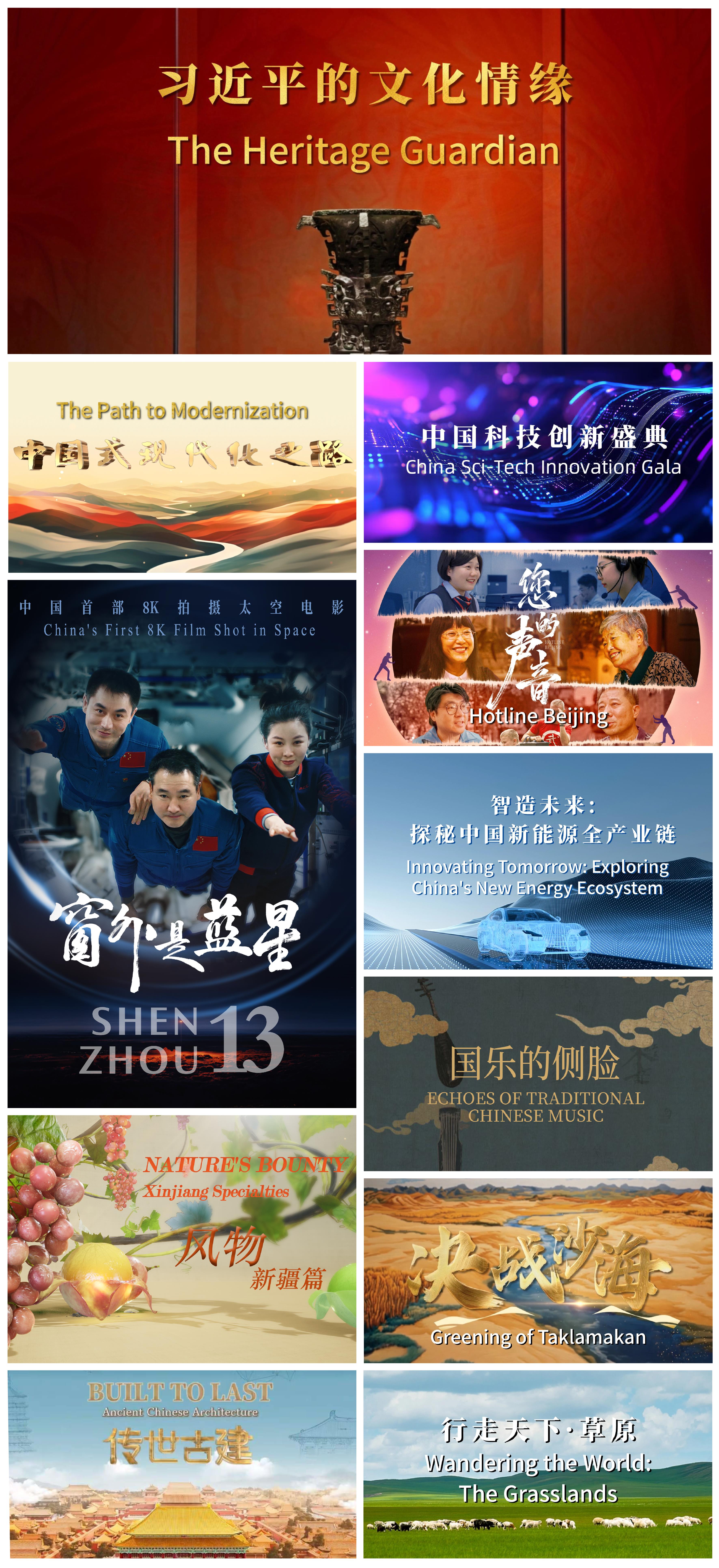 «له فرهنګ سره د شي جين پينګ علاقه» ویډیویي پروګرام په شمول د چين مېډيا ګروپ څه باندې لس غوره ويډيويي پروګرامونه د استراليا، کاناډا، چيلي، اندونيزيا، کوريا جمهوريت، پيرو، روسيې، ټايلند او امريکا په شمول د اسيا او ارام سمندر سيمې د ۱۴ هېوادونو په ۲۲ مهمو رسنيو کې خپرېږي.