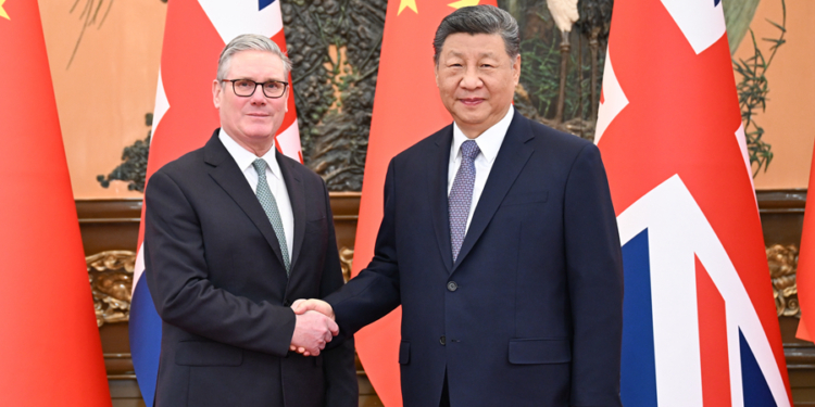 د چين دولت رئيس شي جين پينګ د جنورۍ په ۲۹مه نېټه په پلازمينه بېجينګ کې د بريتانيې له لومړي وزير کير سټارمر سره وکتل.