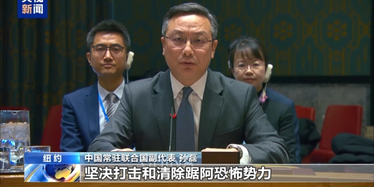 په ملګرو ملتونو کې د چين مرستيال دايمي استازي سون لې د فبرورۍ په ۴مې نېټې په امنيت شورا کې د ترهګرۍ ضد مسئلې يوې علنۍ غونډې ته په وينا کې پر نړيوالې ټولنې غږ کړی، چې د ترهګرۍ ضد مبارزې لپاره ګډې هڅې وکړي.