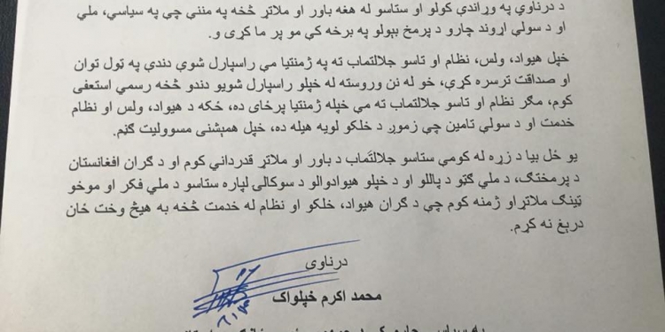 په سیاسي چارو کې د ولسمشر ځانګړي استازي او د سولې شورا د دارالانشا رییس اکرم خپلواک له دندې استفعا کړې ده. نوموړي په دې اړه څه نه دي ویلي چې ولې یې له خپلې دندې استعفا کړې ده، خو وايي چې له حکومت سره به خپلو همکاریو ته به ادامه ورکوي او د ولسمشر د برنامو ملاتړی دی. په دې وروستیو کې د ولسمشر ډېرو نږدې کسانو له خپلو دندو استفعا کړې ده. نه یوازې د ولسمشر ملګرو بلکې د ملي یووالي په حکومت کې ډېرو مهمو څېرو او چارواکو له خپلو دندو استفعا کړې ده، چې د ډېری دې نوماندانو موخه په راتلونکو ولسمشریزو ټاکنو کې د ځان نوماندول دي. خو دا چې د اکرم خپلواک موخه به له دې استفعا څه وي په اړه یې څه نه دي ویل شوي.