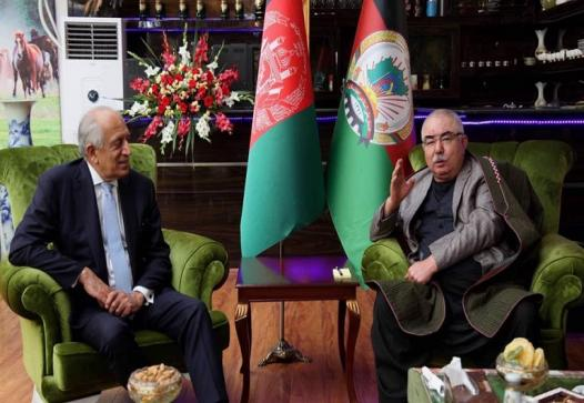 د امریکا ځانګړي استازي د ولسمشر له لومړي مرستیال عبدالرشید دوستم سره د افغان سولې په اړه خبرې کړې دي. سرچینه کاږي دوستم خلیلزاد ته ویلي چې طالبانو سره د سولې په خبرو کې ستر رول لوبولی شي. د افغانستان د ملي جنبش ګوند په خبرپاڼه کې راغلي چې د ولسمشر لومړي مرستیال عبدالرشید دوستم تېره ورځ ناوخته د افغان سولې په برخه کې د امریکا له ځانګړي استازي زلمي خلیلزاد سره کتلي دي. خبرپاڼه کاږي، جنرال دوستم او خلیلزاد د ولسي جرګې د ټاکنو پر روڼوالي ټينګار کړی او روښانه کړې یې ده چې پاکې رایې باید له ناپاکو هغو جلا شي تر څو د ټاکنو خپلواک کمېسیون پر فعالیتونو د خلکو باور رامنځته شي. سرچینه کاږي چې دواړو لوریو د ولسمشرۍ پر راتلونکو ټاکنو هم مفصلې خبرې کړې دي. د یادونې ده، زلمي خلیلزاد تېر ماښام له ولسمشر غني سره هم د سولې بهیر په اړه خبرې کړې دي.