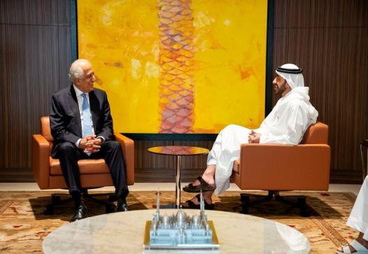 د افغان سولې په اړه د امريکا ځانګړي استازي زلمي خليلزاد د متحده عربي اماراتو د بهرنيو چارو له وزیر سره پر افغان سولې خبرې کړې دي. د اماراتو د بهرنيو چارو وزارت له خوا په خپره شوې خبرپاڼه کې راغلي چې خليلزاد پرون په ابوظبي کې د بهرنيو چارو له وزير شيخ عبدالله بن زايد النهيان سره وليدل. سرچينې زياته کړې، په دې ليدنه کې د افغانستان د سولې پروسې، د دواړو هېوادونو پر اړيکو او پر ځينو نورو نړيوالو موضوعاتو خبرې وشوې. په خبرپاڼه کې راغلي چې شيخ النهيان د افغانستان د سولې او ثبات لپاره د امريکا د ځانګړي استازي د هڅو او هلو ځلو ملاتړ وکړ. نوموړي دغه راز له افغانستان سره په بېلابېلو برخو کې د همکاريو ډاډ هم ورکړ. خليلزاد په داسې حال کې د اماراتو د بهرنيو چارو له وزير سره ليدلي، چې نن په دغه هېواد کې د افغان سولې په اړه څلور اړخيزه ناسته کېږي. ويل کېـږي چې په دې ناسته کې د افغانستان، اماراتو، سعودي او امريکا استازي ګډون کوي.